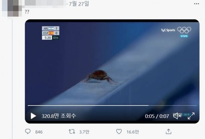 韓国メディア「Money S」は28日、大井ホッケー競技場で行われた女子ホッケー・グループBのアルゼンチン対スペインの試合で、中継にゴキブリに映り込んだと伝えた。