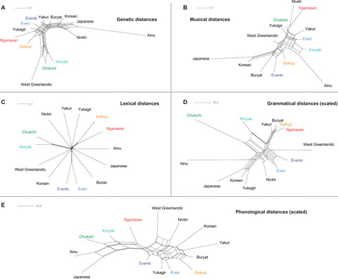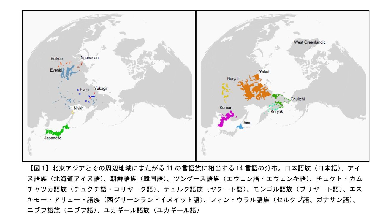 北東アジアとその周辺地域にまたがる11の言語族の言語(文法、音韻、語彙)、音楽、ゲノムを比較・分析し、相関関係を検証。語族を超えた解析は初。