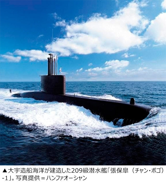 3隻受注したDSME 1400モデルのものだ。DSME 1400は韓国の209級潜水艦「張保皐(チャン・ボゴ)-1」の派生型だ。