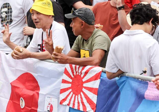 記事によると、韓国の広報活動を行う徐ギョン徳(ソ・ギョンドク)誠信女子大教授は同日、自身のSNSで「3日(現地時間)に行われたパリ五輪男子自転車競技ロードレースの試合に“旭日旗応援”が登場した」「ある日本人が自国の選手を応援するために旭日旗を掲げた」などと説明し、「五輪の試合に旭日旗応援が登場したのは、21年東京五輪に続いて2回目だ」と指摘した。