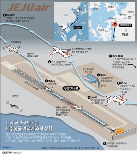 チェジュ航空機の事故発生時の状況(イラスト)=(聯合ニュース)