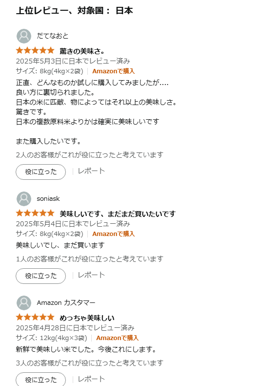 これでホルホルマウントしてくるのは気持ち悪いけどバカ高い日本米の牽制に使ってほしい