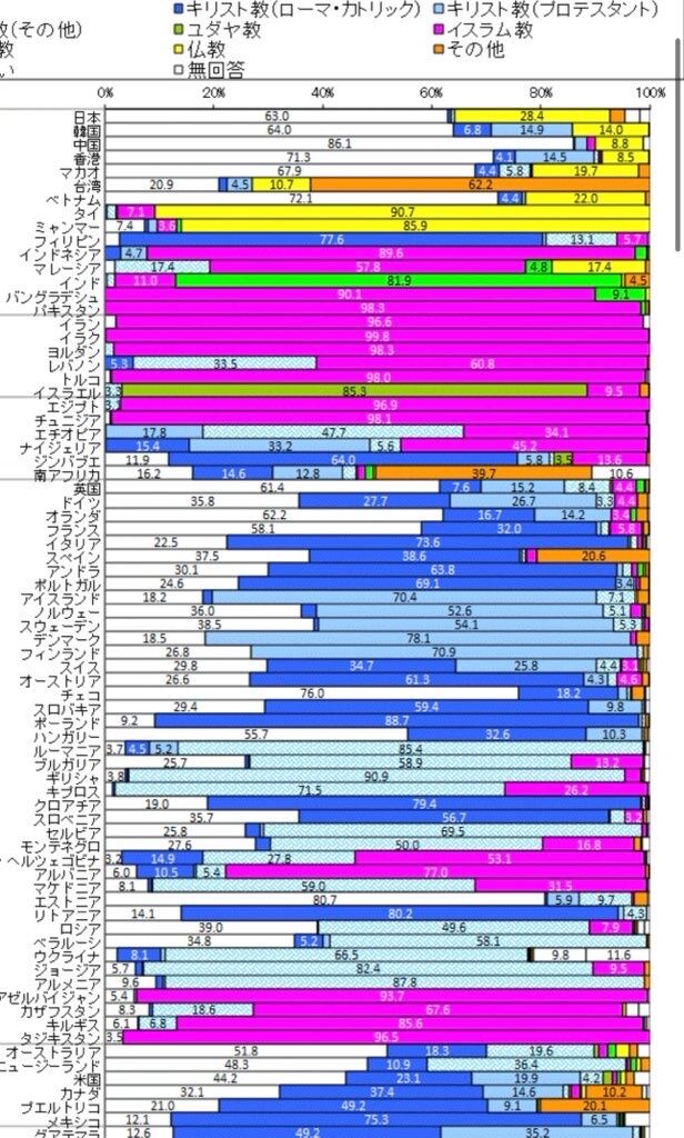 世界的には、社会主義国・旧社会主義国で無宗教の比率は高く、