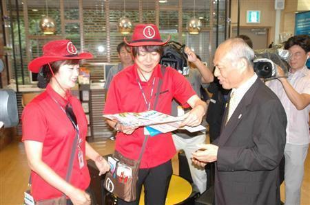 分かるようになっている。施設内に到着した舛添知事は、ユニホームの赤いポロシャツを着たボランティアの若い男女に「年齢に