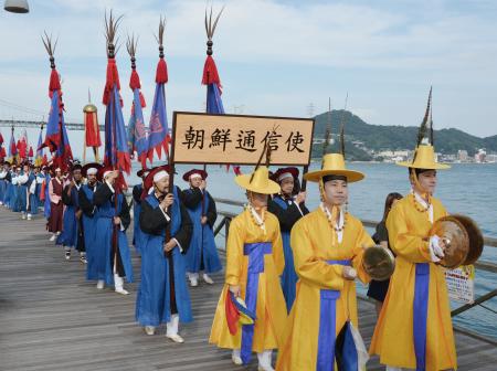 江戸時代に日朝交流を担った朝鮮王朝の外交使節団「朝鮮通信使」の行列を再現するイベントが23日、