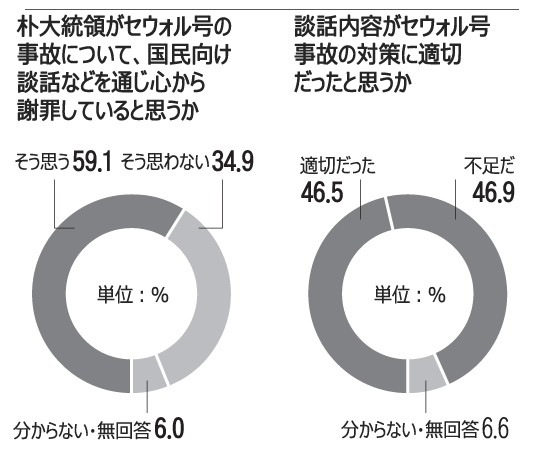 調査は朴大統領が国民向け談話を発表した翌日に実施された。それによると「朴大統領がセウォル号の