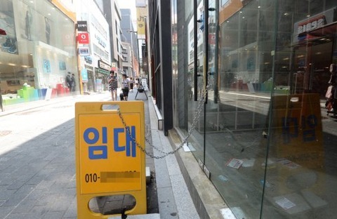 5日、ソウル中区明洞の街のお店の前に新しいテナントを求める看板が立てられている。